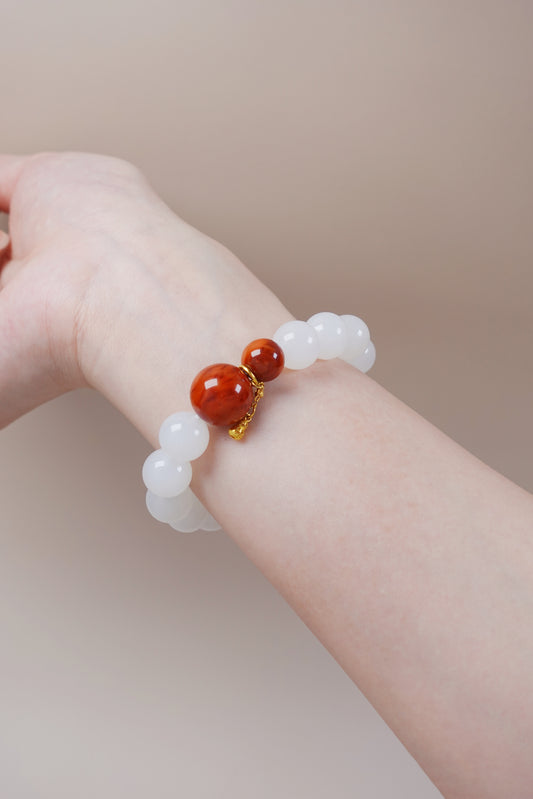 Sold outWhite Jade & Red Agate Bracelet
