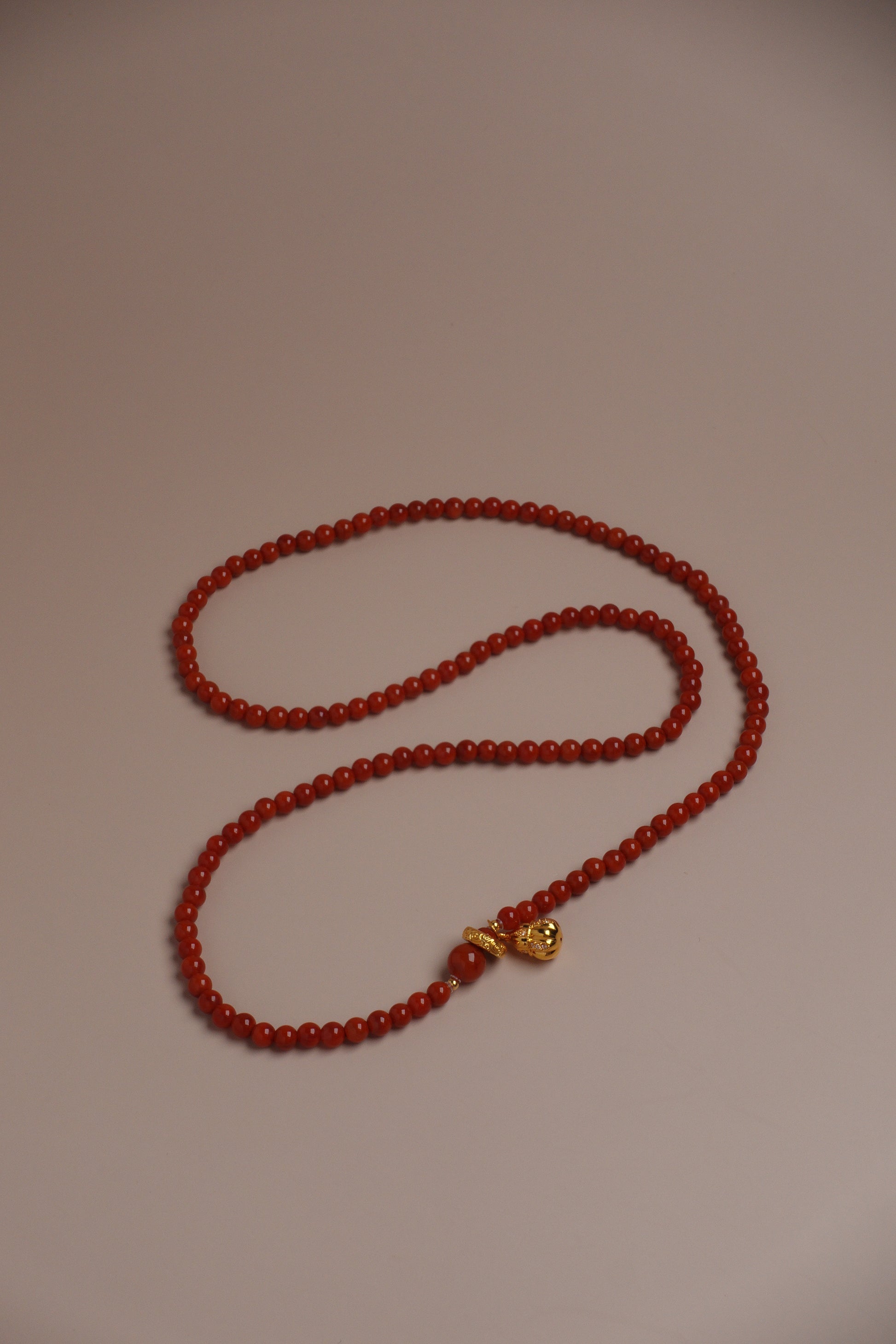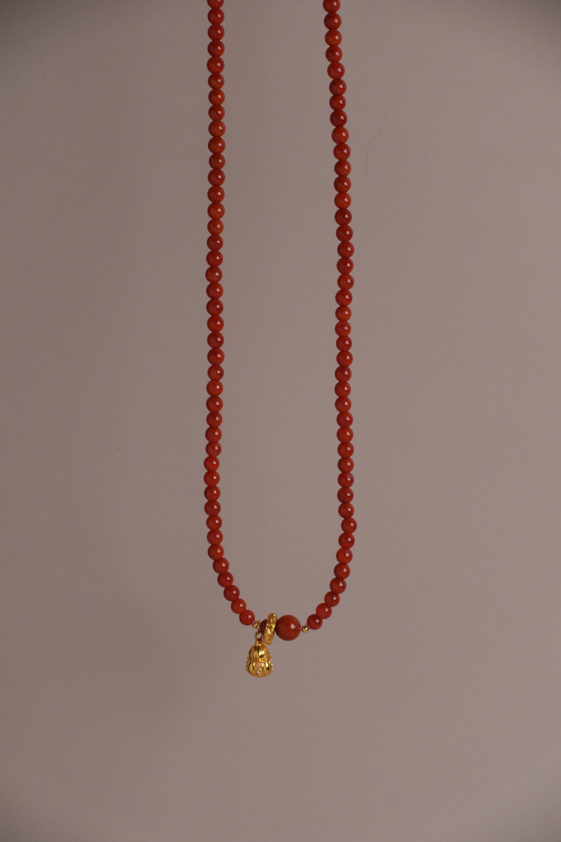 Ember Blessing Necklace – Nanhong Flame Beads & 18K Gold Gourd