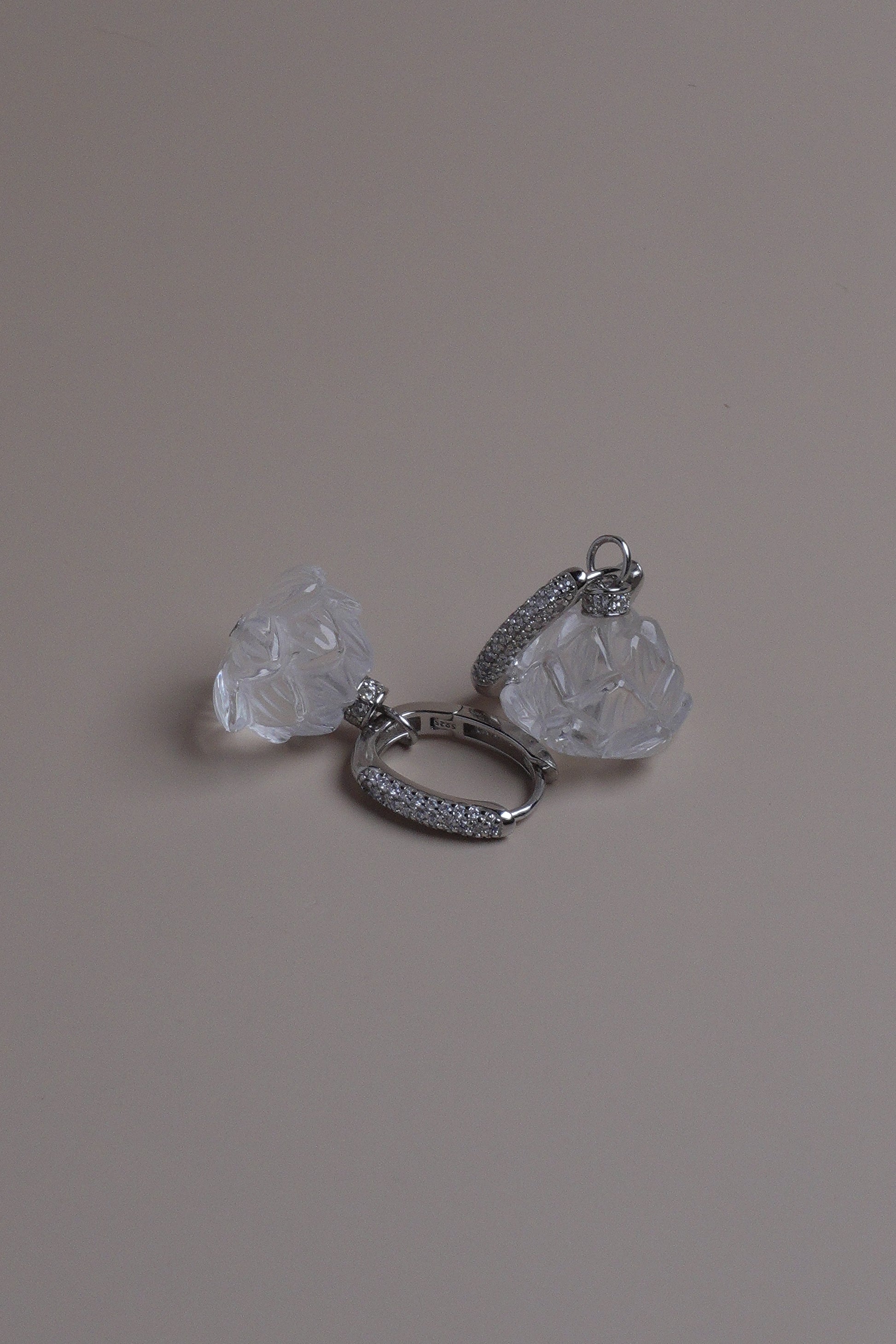 Carved clear quartz (white crystal) lotus drops