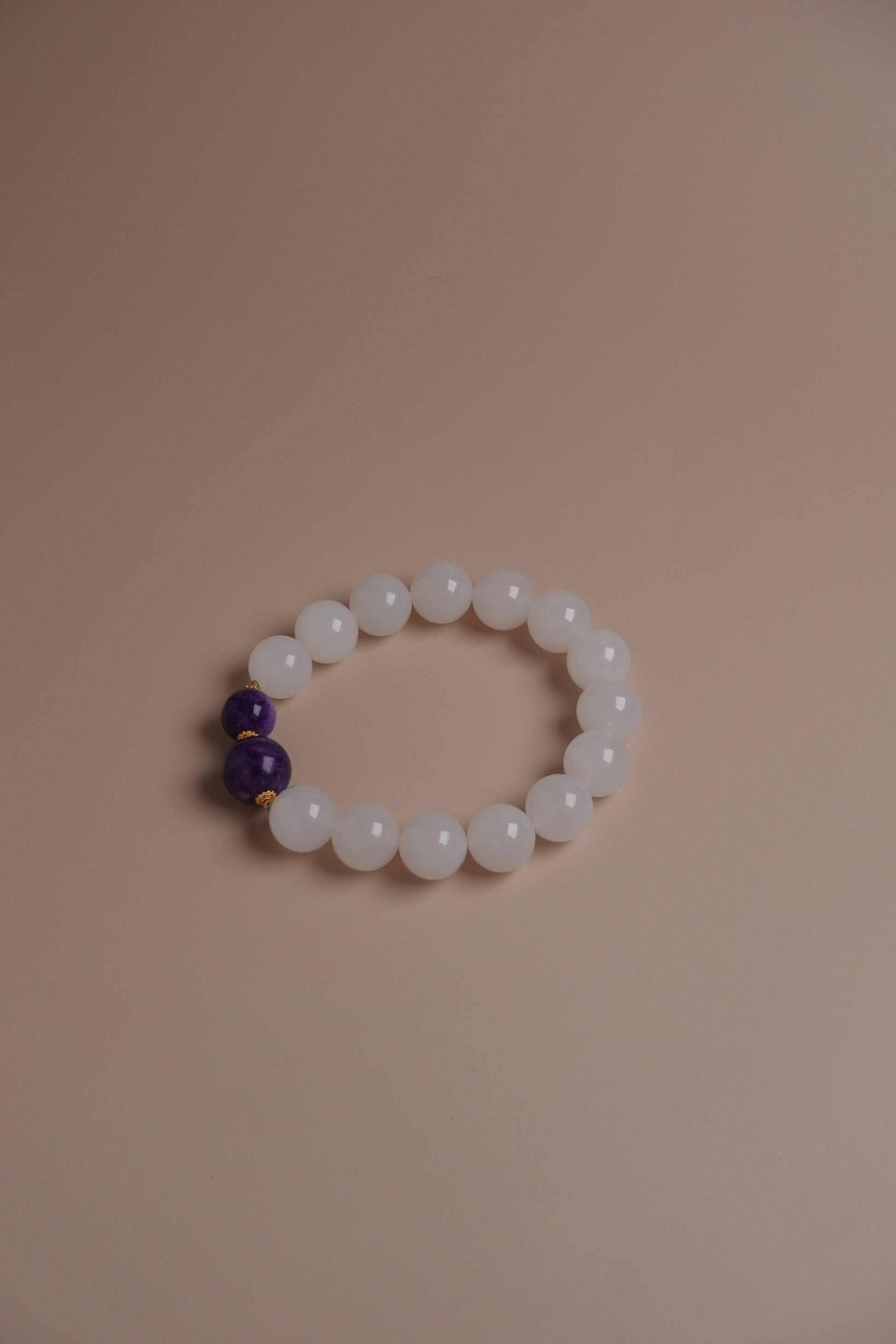 Moon & Mulberry Bracelet – White Jade and Purple Charolite with 18k Gold